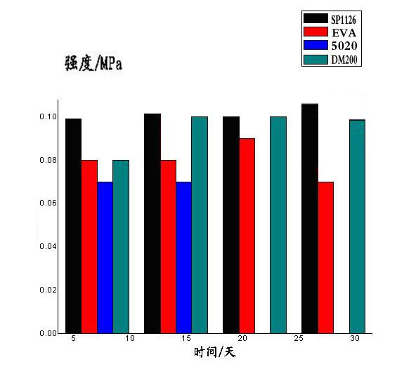 由圖可以看出,SP1126的粘結(jié)強(qiáng)度在7天時(shí)就接近國家標(biāo)準(zhǔn)要求0.1Mpa,我們實(shí)