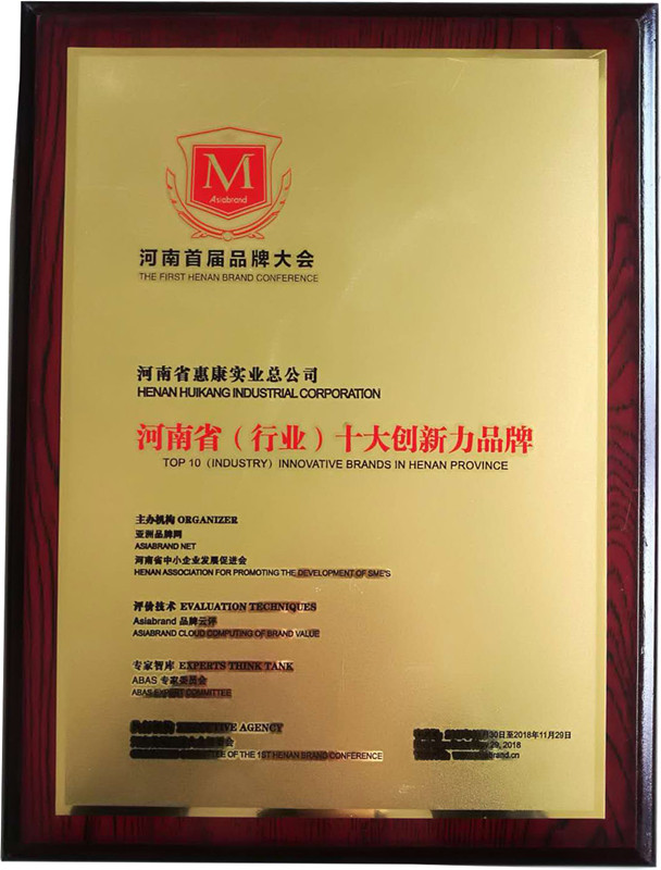 近些年來河南省在品牌建設方面的重視程度不夠,致使河南省的世界知名品牌不多。為了讓企業(yè)了解自己的行業(yè)發(fā)展地位以及自身品牌價值的變化,11月30號舉行了河南省品牌大會,助力河南省打造出越來越多知名的品牌,河南惠康實業(yè)總公司榮獲十大創(chuàng)新力品牌。