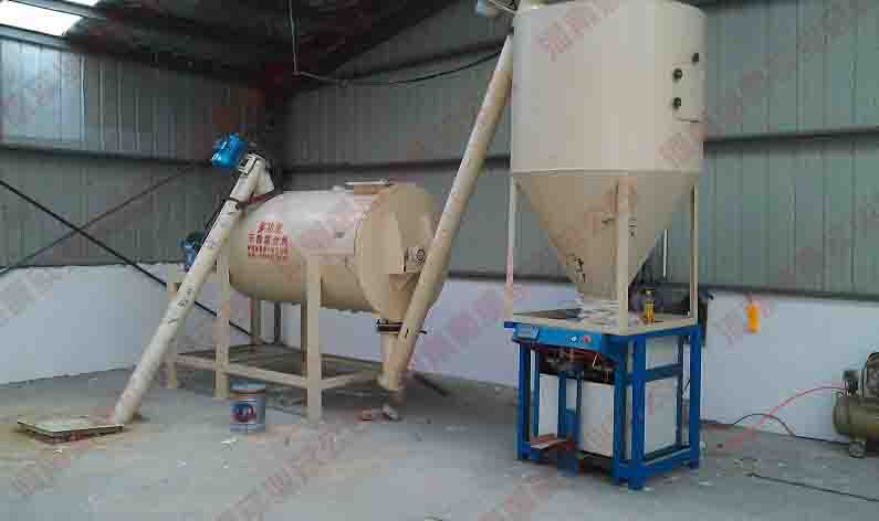 膩子粉攪拌機全自動機械主要部件:1、物料提升機:用于將物料提升至攪拌機。2、第二臺提升機:用于將物料提升至預(yù)拌料倉。3、臥式多帶混合器:用于物料的均勻混合。4、成品倉:儲存成品,自動稱重包裝。5、自動包裝機:包裝成品自動稱重。6、控制柜:用于生產(chǎn)線的電氣開關(guān)控制…